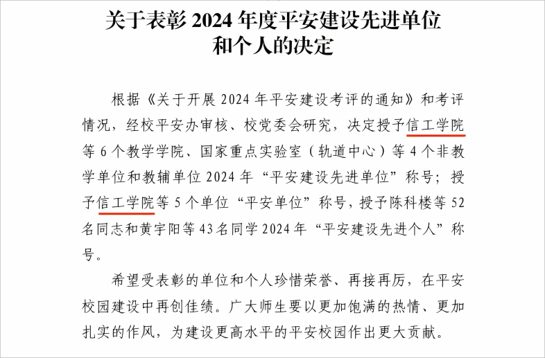 获评2024年“平安建设先进单位”和“平安单位”称号,位列全校第一。华都娱乐场