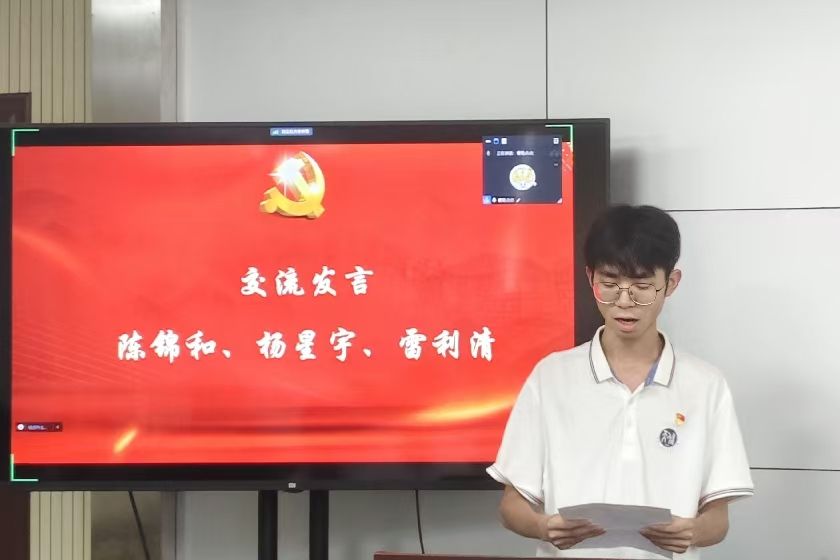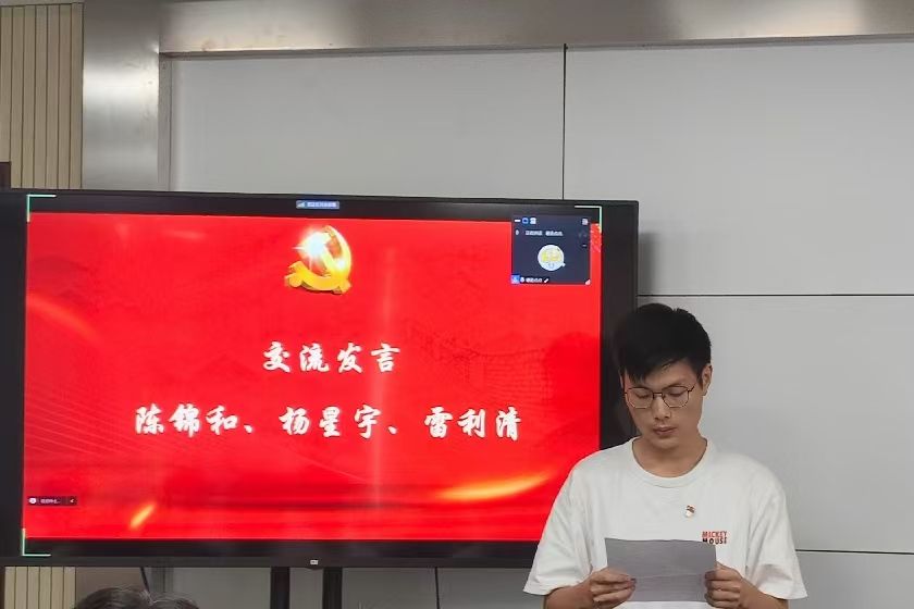 第一党支部学生党员陈锦和结合学习体会和自身参加创新创业竞赛经历作了分享。他表示,作为天佑地网医生项目团队的负责人,正是由于国家创新创业政策的支持和机制的保障,使其能够和团队成员一起深入实地调研,不断创新实践,成功破解铁路接地网腐蚀的技术难题,并由此获得2024年大学生创新大赛省级金奖。他呼吁青年学子要积极响应国家号召,将个人理想融入国家发展大局之中,在奋斗中磨砺意志,在挑战中锤炼自我,不断提升创新能力与实践能力,为科技强国建设贡献青春热血和智慧力量。