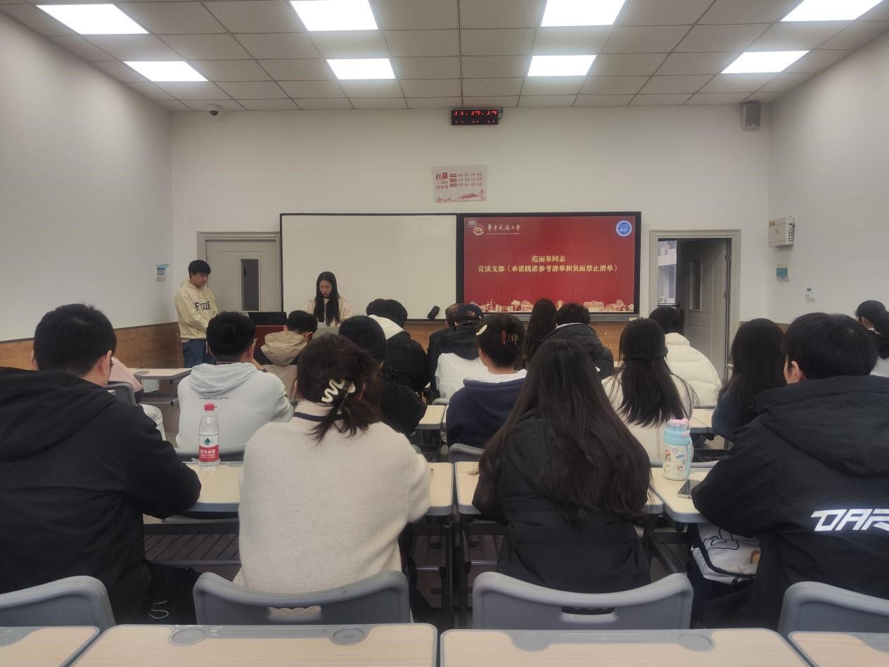 软件轨控与道铁学生党支部书记张宇婷同志总结发言时指出,我们要以“新时代赣鄱先锋”为榜样,深入开展承诺践诺,以高度的政治责任感和使命感,认真对待每一个承诺,注重落地落细,让党员承诺有内容有质量。