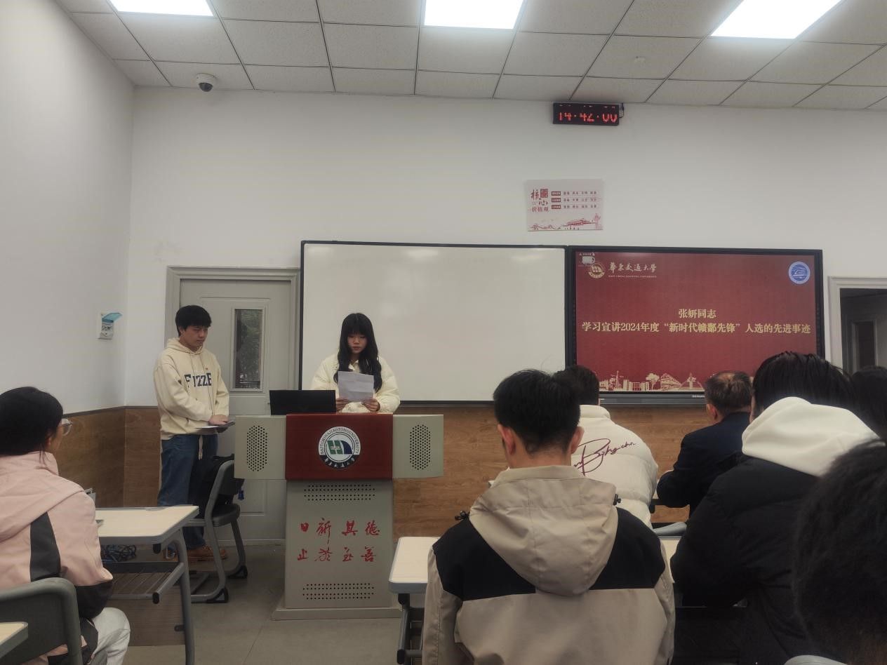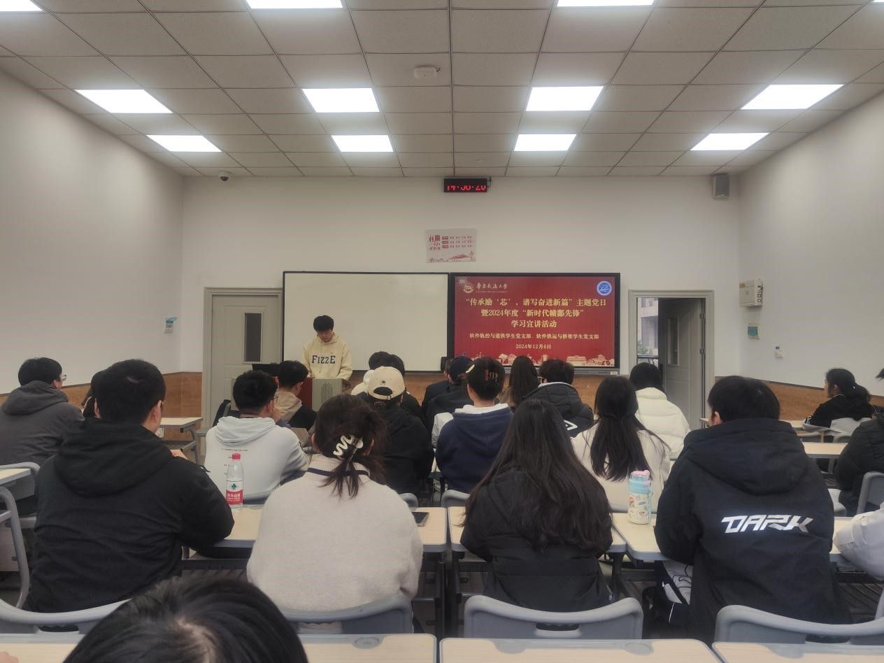 软件轨控与道铁学生党支部、软件铁运与桥梁学生党支部联合开展“传承励‘芯’,谱写奋进新篇”主题党日暨2024年度“新时代赣鄱先锋”学习宣讲活动。院党委委员、副院长张利华出席会议,软件轨控与道铁学生党支部、软件铁运与桥梁学生党支部全体党员参会。