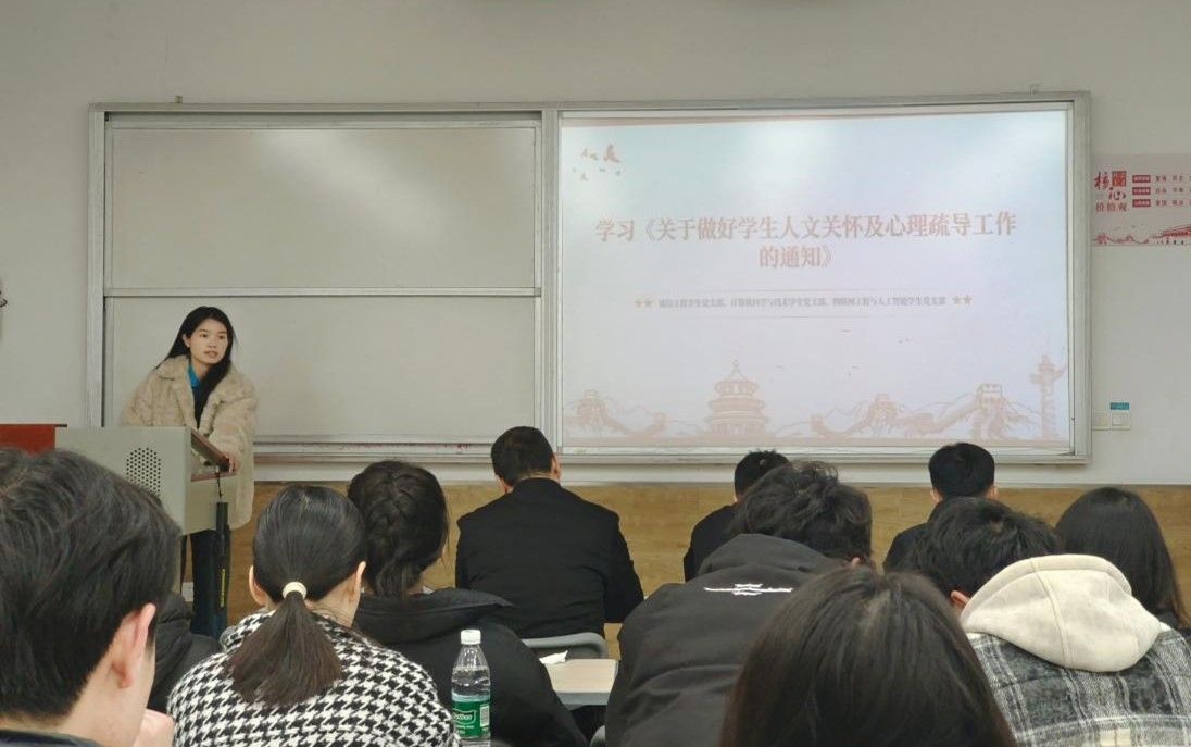 《关于做好学生人文关怀及心理疏导工作的通知》要求,号召全体学生党员同志要发挥先锋模范作用,加强学习,提升个人的心理素质和心理健康知识,关心关爱周围同学,积极主动与同学交流,敏锐发现一些苗头性的问题,并学会积极引导,帮助学生解决问题。