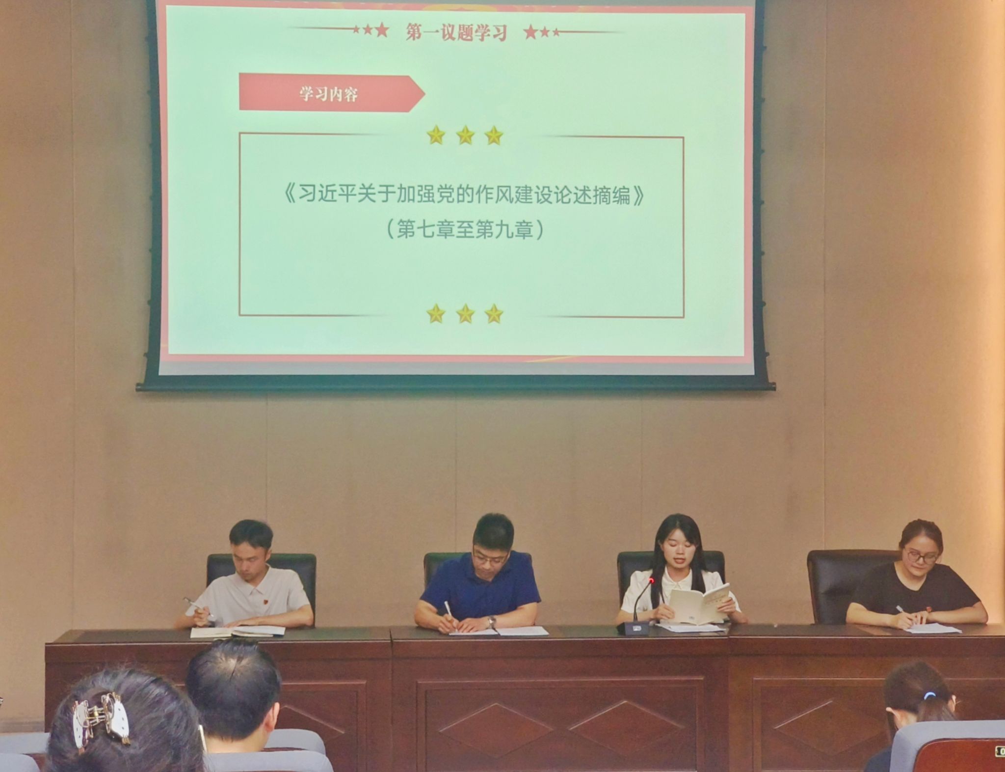 会议传达了习近平总书记在河南考察时的重要讲话精神,全体党员集中学习了《习近平关于加强党的作风建设论述摘编》(第七至九章)、《锲而不舍落实中央八项规定精神,以优良党风引领社风民风》重要文章及《党政机关厉行节约反对浪费条例》等内容。