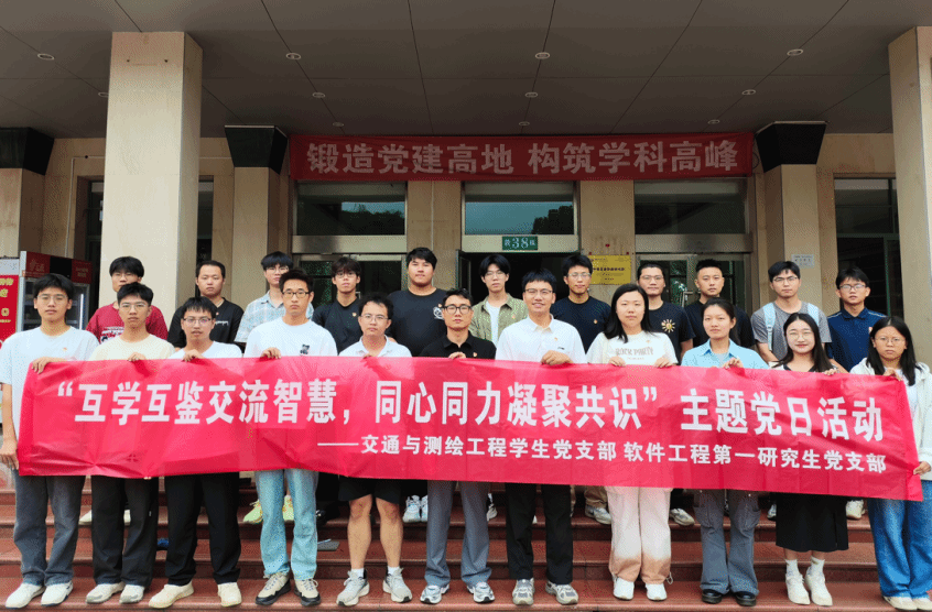 交通与测绘工程学生党支部联合开展“互学互鉴交流智慧,同心同力凝聚共识”主题党日交流活动,软件工程第一研究生党支部书记肖志鹏、交通与测绘工程学生党支部书记潘辉出席,两支部党员代表参加。