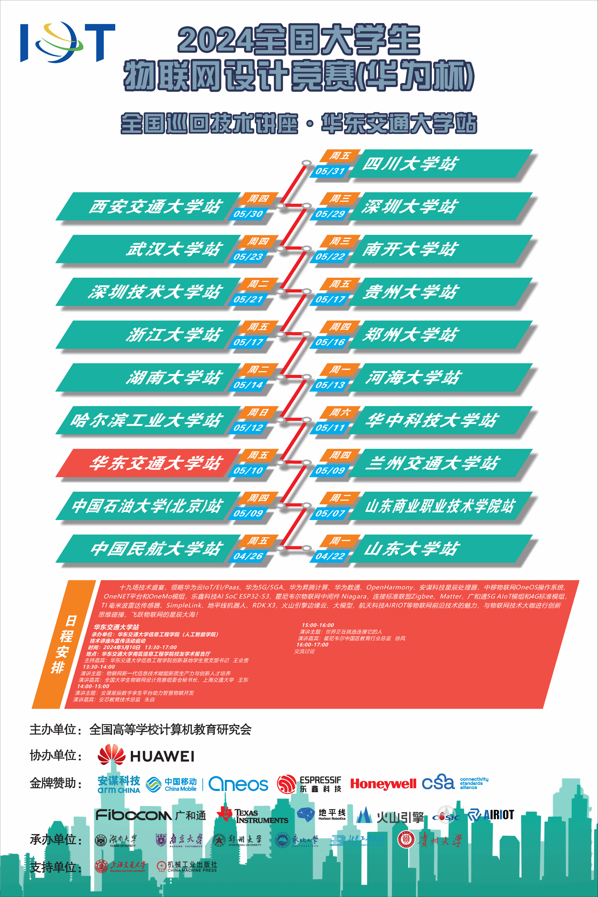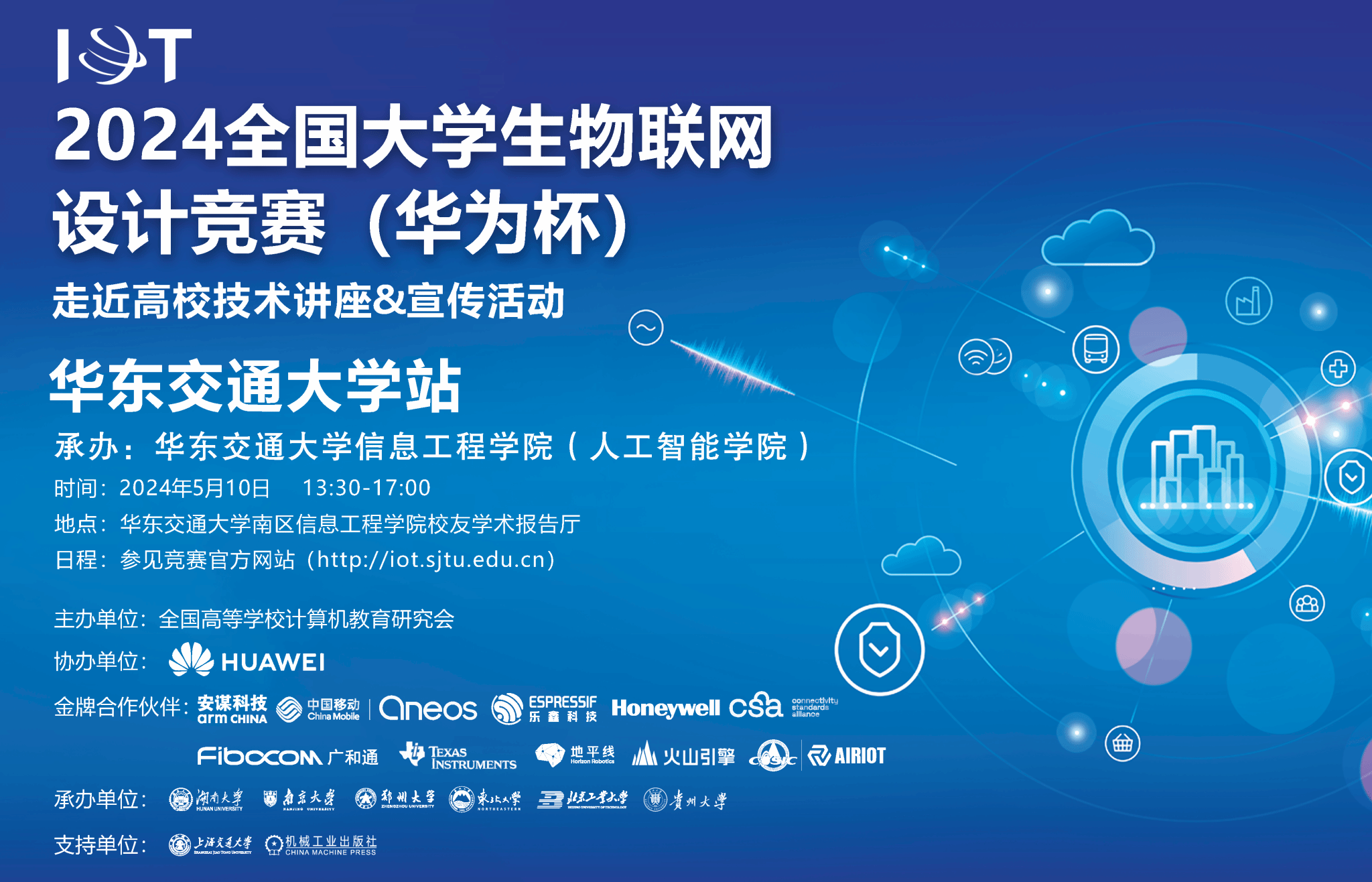 5月10日,“2024年全国大学生物联网设计竞赛(华为杯)走进高校技术讲座&宣传活动”第6场华都娱乐场