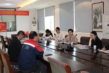图为调研队成员与笪总、蔡董进行交流。