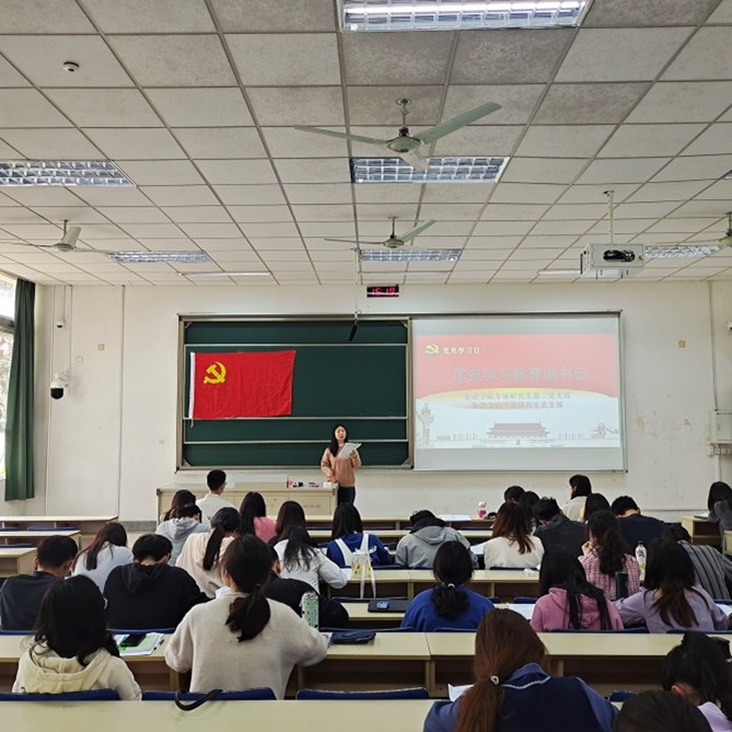 为了庆祝中国共产党成立100周年,重温红色记忆,加强党史学习教育,4月28日下午,华都娱乐场 专硕研究生第二党支部和学硕研究生党支部全体党员在德经楼113开展了党史学习教育读书日研讨活动,活动由党支部书记查腾飞老师和王乐乐老师主持。