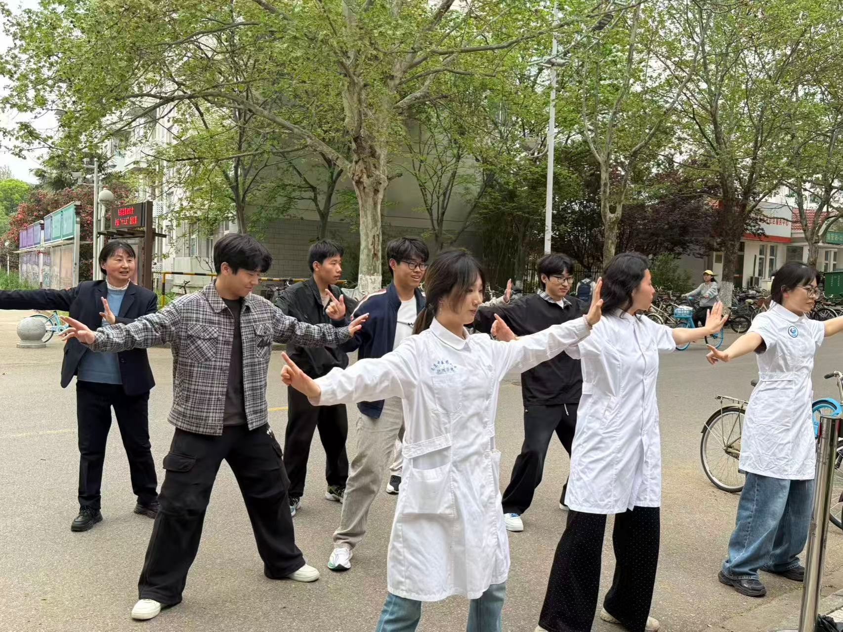 中医特色体验环节中,花茶品鉴、耳穴埋籽、颈肩推拿、八段锦练习等丰富项目依次开展,让同学们在沉浸式体验中近距离感受中医药文化的独特魅力,切实掌握实用的日常养生方法。活动现场,宿管阿姨们也主动参与其中,与同学们一同体验中医护理的益处,她们亲切叮嘱同学们规律作息、劳逸结合、爱护身体,朴实的话语里满是关怀,为活动增添了浓浓的暖意与归属感,成为“一站式”学生社区联动共建中一道暖心的风景线。