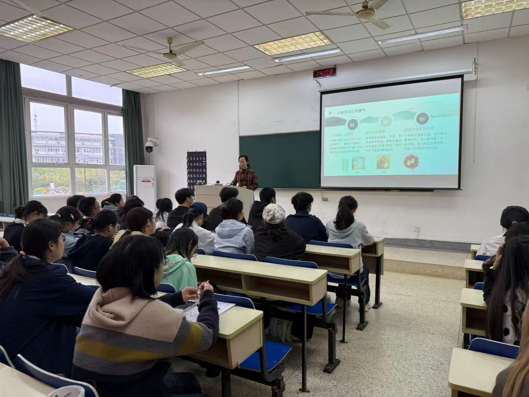 南京中医药大学志愿团队紧扣春季养生核心,结合大学生久坐学习、经常熬夜、用眼过度等日常高频健康问题,用通俗易懂的语言普及中医“治未病”核心理念,细致讲解春季养生常识、日常健康护理技巧,同时通过互动问答、现场答疑等形式,引导同学们主动思考、积极参与,现场氛围热烈融洽,学习效果显著。
