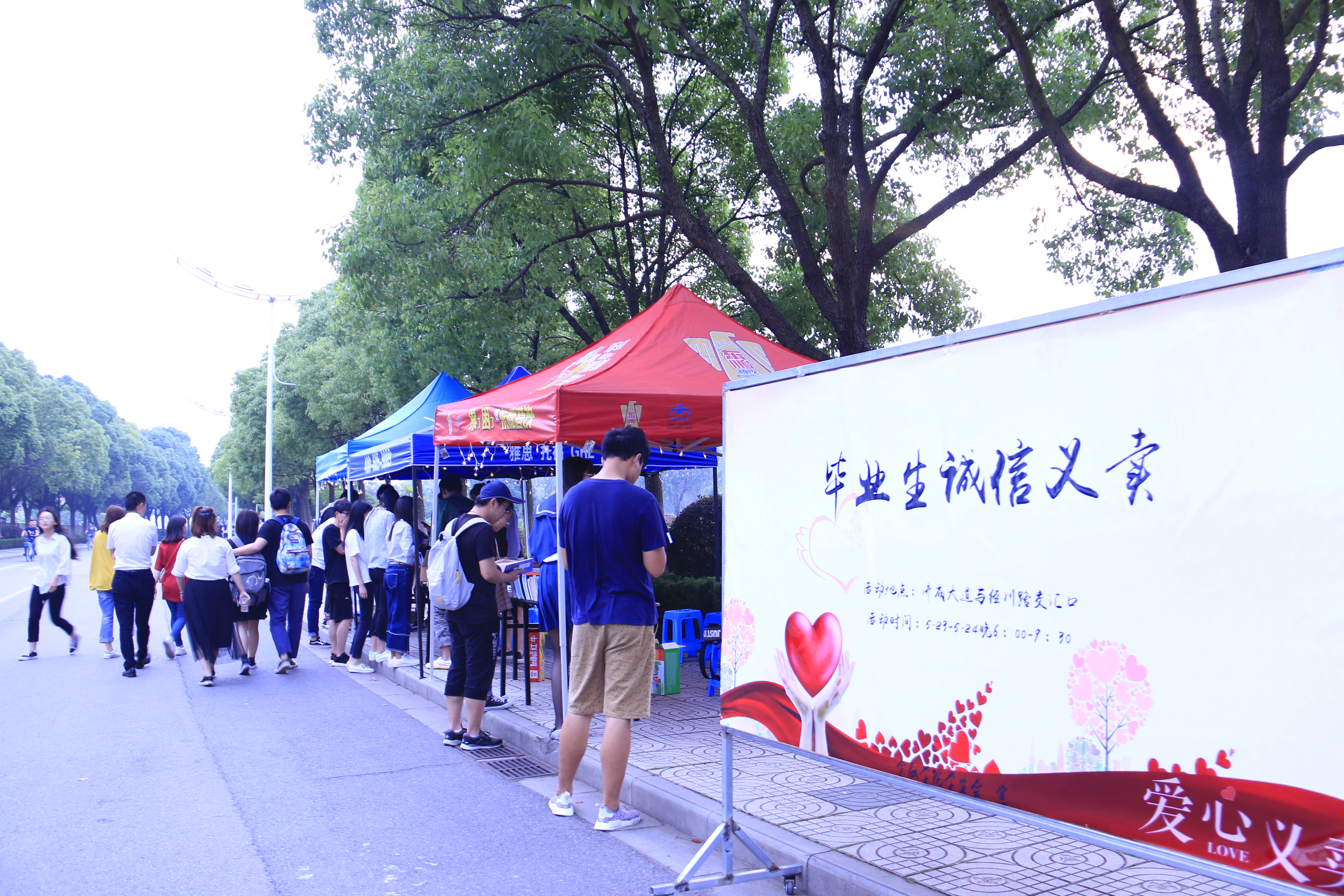 为了加强国家助学贷款及其他资助政策的宣传,普及征信和金融知识,倡导契约精神,促使学生树立诚信观念,5月23-24日18时-21时30分,“温情满校园,爱心不毕业”华都娱乐场 2018年毕业生诚信义卖主题活动在仙林校区济成大道与经川路交汇口处成功举办。