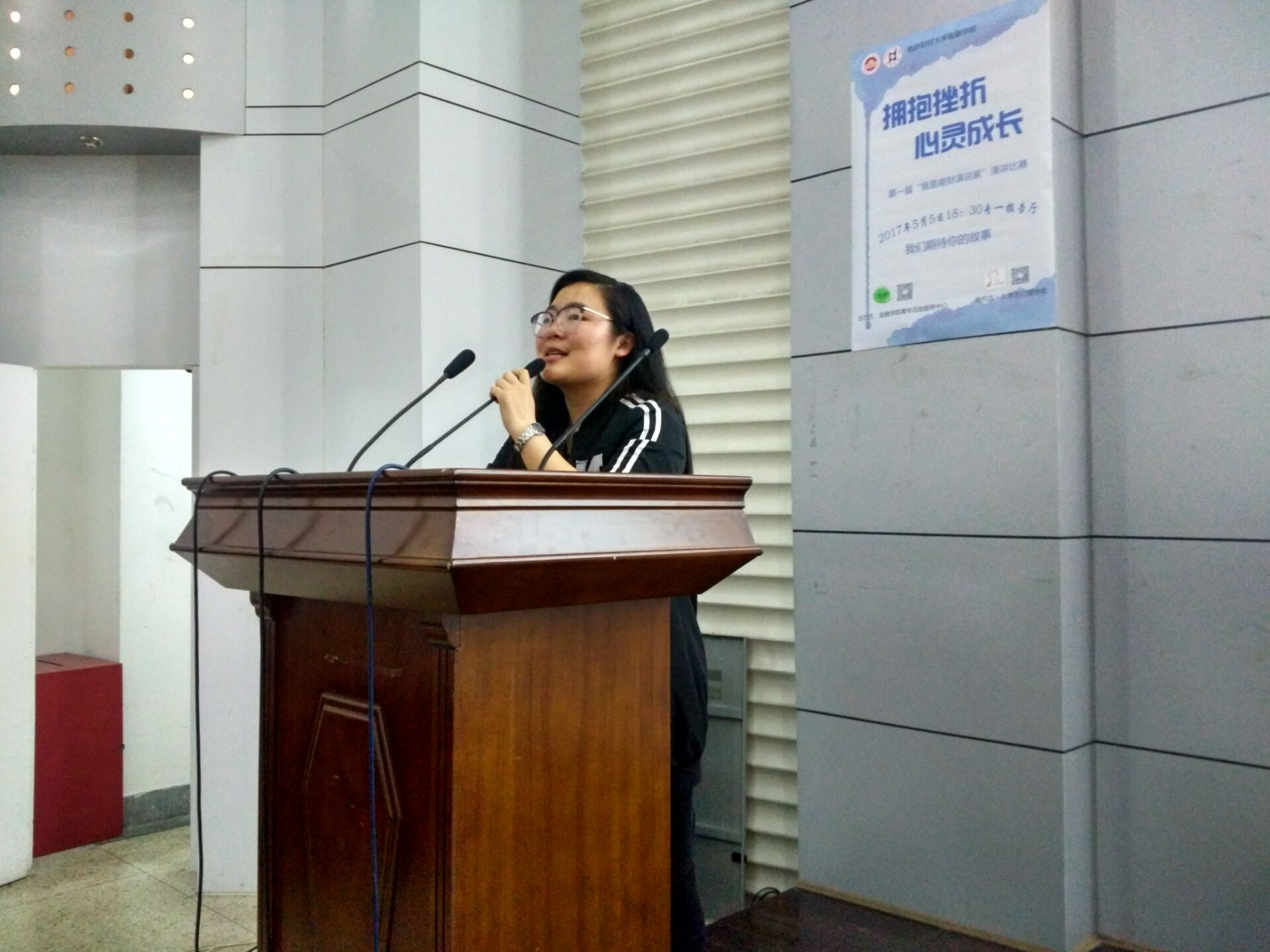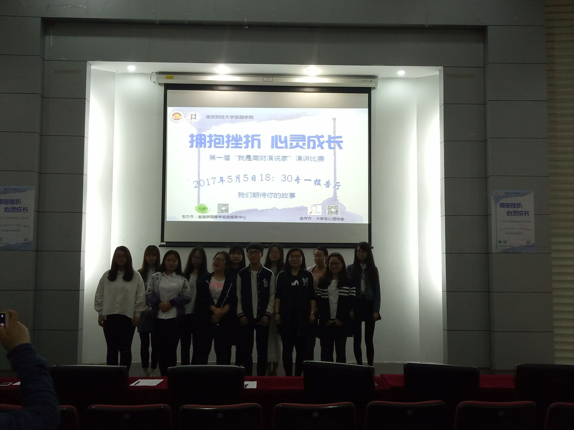 2017年5月5日晚,华都娱乐场 心理健康教育与咨询中心主办华都娱乐场 承办,在专一报告厅开展了“拥抱挫折,心灵成长”的演讲大赛,全校同学踊跃参与。此次大赛的评委为华都娱乐场 学工秘书黄炜老师,学生会主席高佳柳,心协主席范依蒙,青年互助服务中心主席陈晨,蒋文彬。