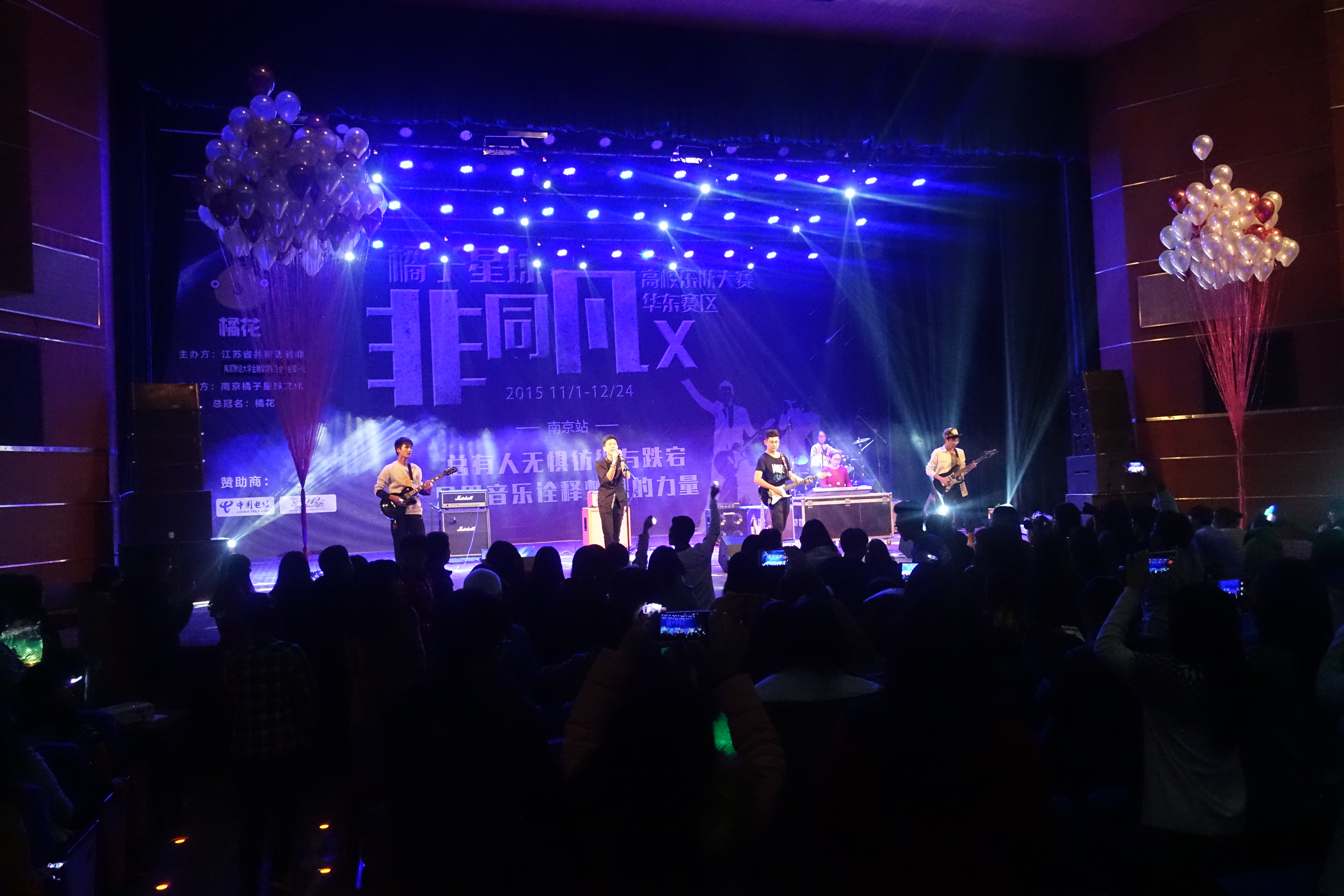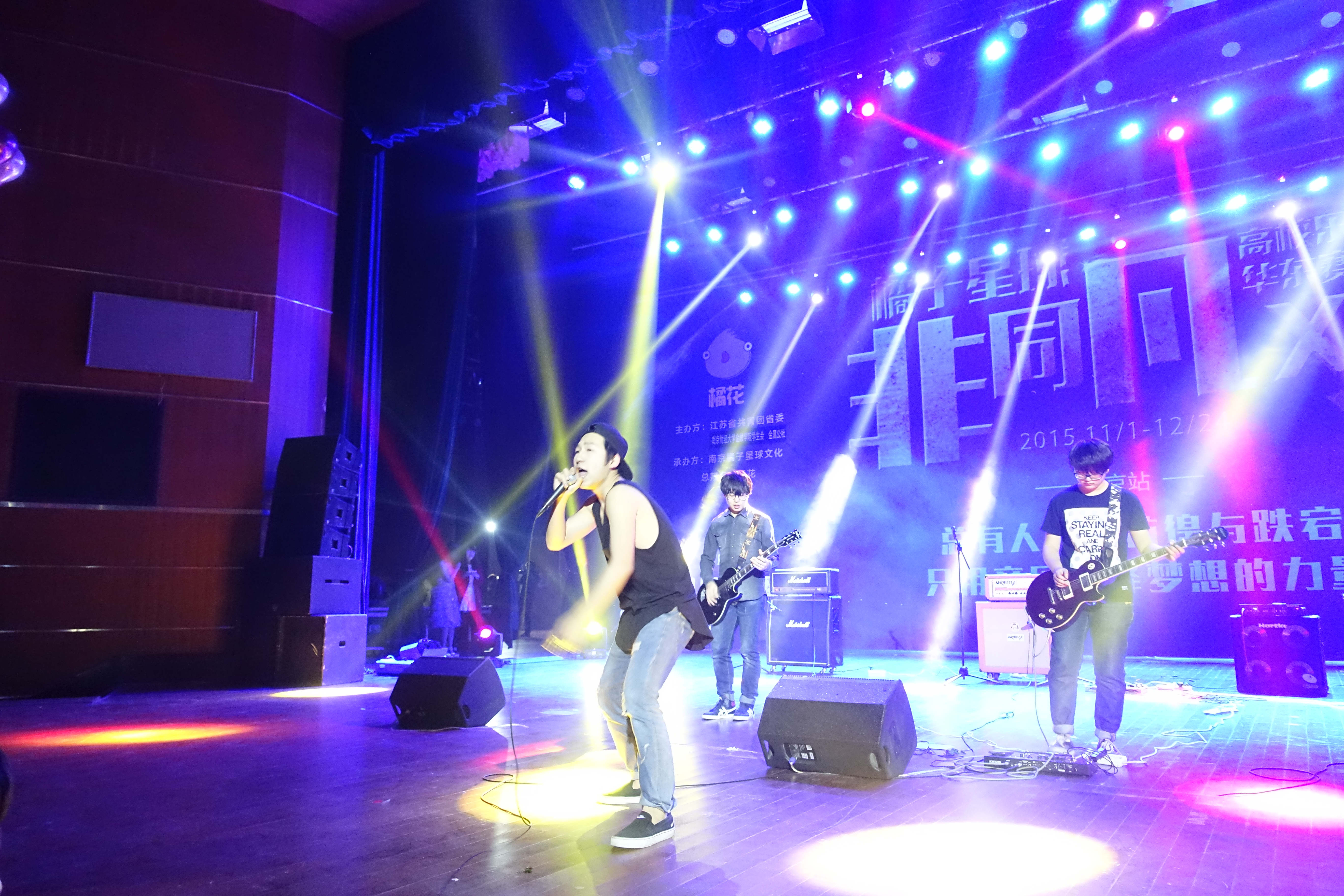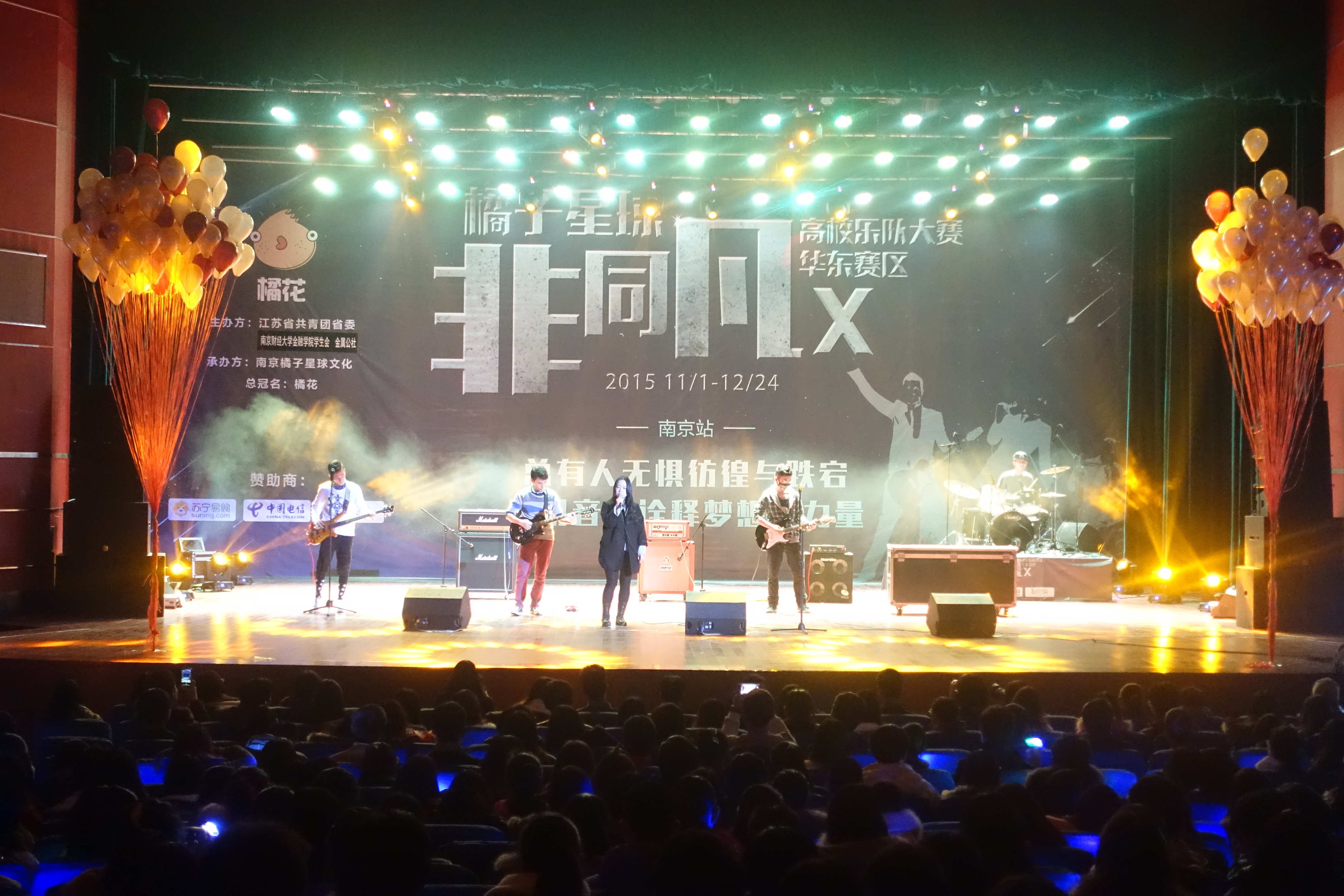 12月9日18:40,“橘子星球·非同凡X”全国高校乐队大赛华东赛区华都娱乐场 站的比赛在大学生活动中心大礼堂拉开帷幕。本次大赛由江苏省共青团省委、华都娱乐场 学生会、金属公社主办,南京橘子星球文化承办,来自各大高校的8支乐队给我们带来了一场前所未有的视听盛宴。