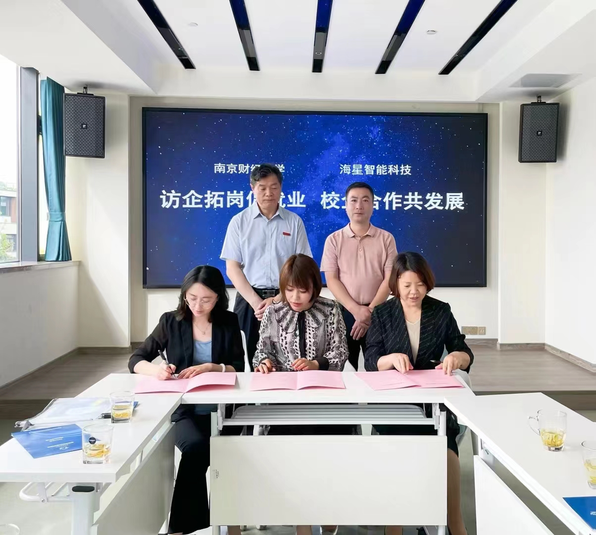 李玉琴书记、陈苏书记分别与公司代表签订实习就业基地协议,温潘亚副书记为南京海星智能科技发展有限公司和江苏省安立丰控股集团“华都娱乐场