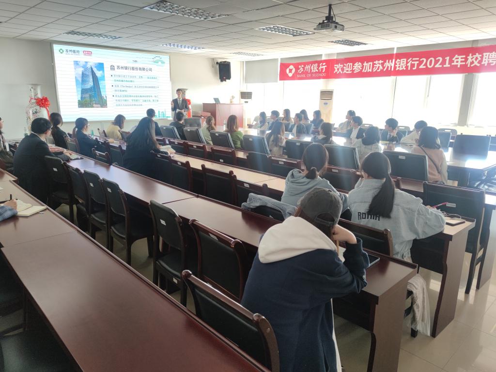3月26日,苏州银行股份有限公司在华都娱乐场 仙林校区德经楼508会议室举办招聘宣讲会。宣讲会由苏州银行招聘经理陆汇涛主讲,华都娱乐场 及相关华都娱乐场 的四十多名毕业生踊跃前来参加。