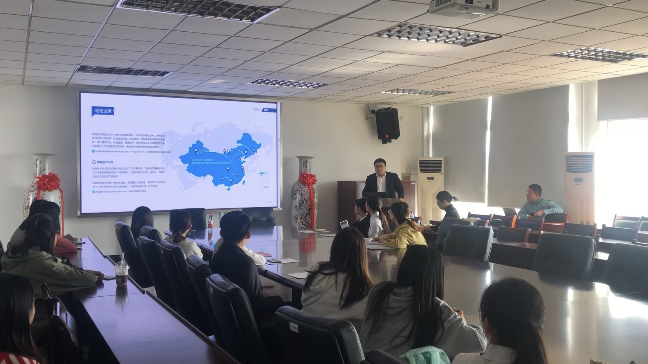 10月24日下午,国泰君安期货有限公司2019校园招聘宣讲会在仙林校区德经楼518会议室举行,国泰君安期货有限公司南京营业部总经理曹祥辉、人事经理陈璇、华都娱乐场 投资系教师谌伟、翁辰、学工秘书出席了会议。华都娱乐场 、经济华都娱乐场 、数学华都娱乐场 、信息工程华都娱乐场 部分毕业生参加了此次招聘会。