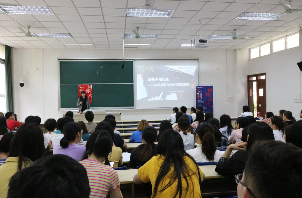 5月31日下午,成长不期而遇——《实习求职方法论与自我探索》就业指导讲座在德经楼114教室举行,中信证券江苏分公司人力资源总监王裕娟担任本次宣讲人,华都娱乐场 党委副书记章冬斌及部分2016级学生参加了本次招聘会。
