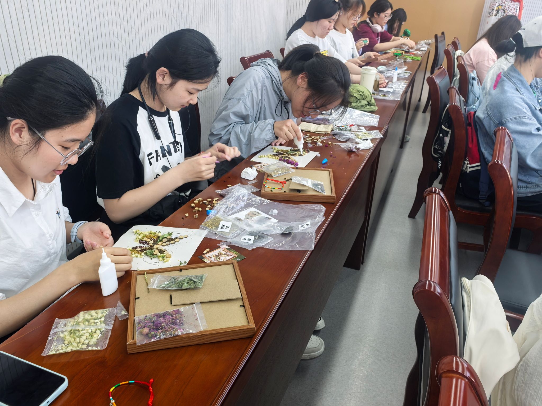 活动现场,传统手工艺项目丰富多彩。同学们制作艾草锤、龙舟挂件、中草药香氛画和香包挂件,在体验传统技艺的同时,感悟先辈智慧,仿佛与传统文化进行了一次亲密对话。而这一切都围绕着诚信教育这一核心展开。制作香包时,同学们专注地缝制,每一针每一线都象征着诚信做人的坚守,他们在实践中领悟到,正如有缝制香包的耐心与细心,诚信品质的培养也需要脚踏实地的践行。