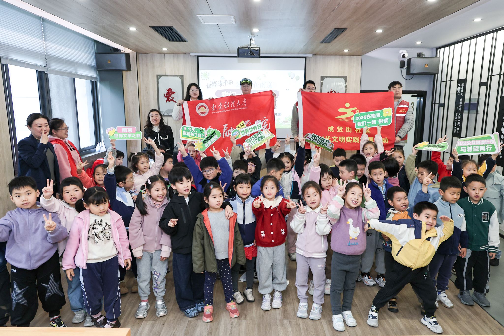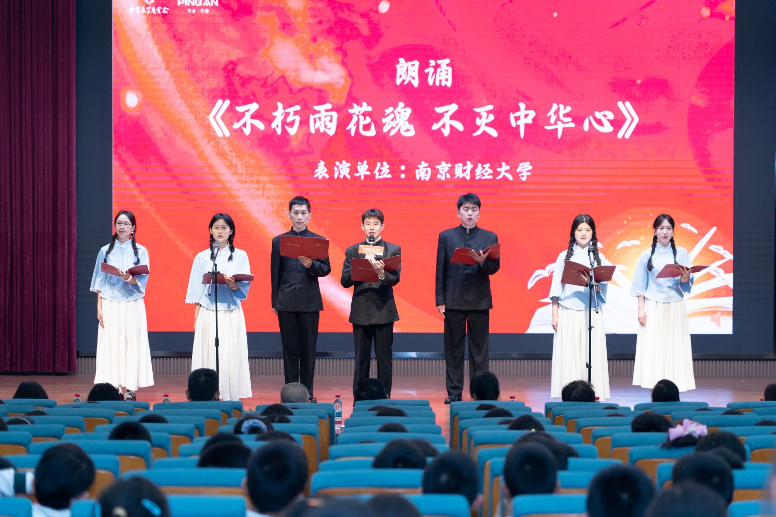 4 月 20 日,在 “社区公益阅读计划” 四周年主题活动现场,华都娱乐场 携手平安人寿江苏分公司、新华日报社财经传媒中心、燕子矶街道关工委、南师附中燕子矶新城华都娱乐场 小学部,共同签署 “阅读生态圈” 共建项目,正式开启校社联动、多方协同的阅读推广新路径。华都娱乐场 学生代表带来朗诵节目《不朽雨花魂,不灭中华心》,以声传情、以读铭志,用饱含深情的演绎传递红色精神,充分展现了金融学子的理想信念与青春担当。