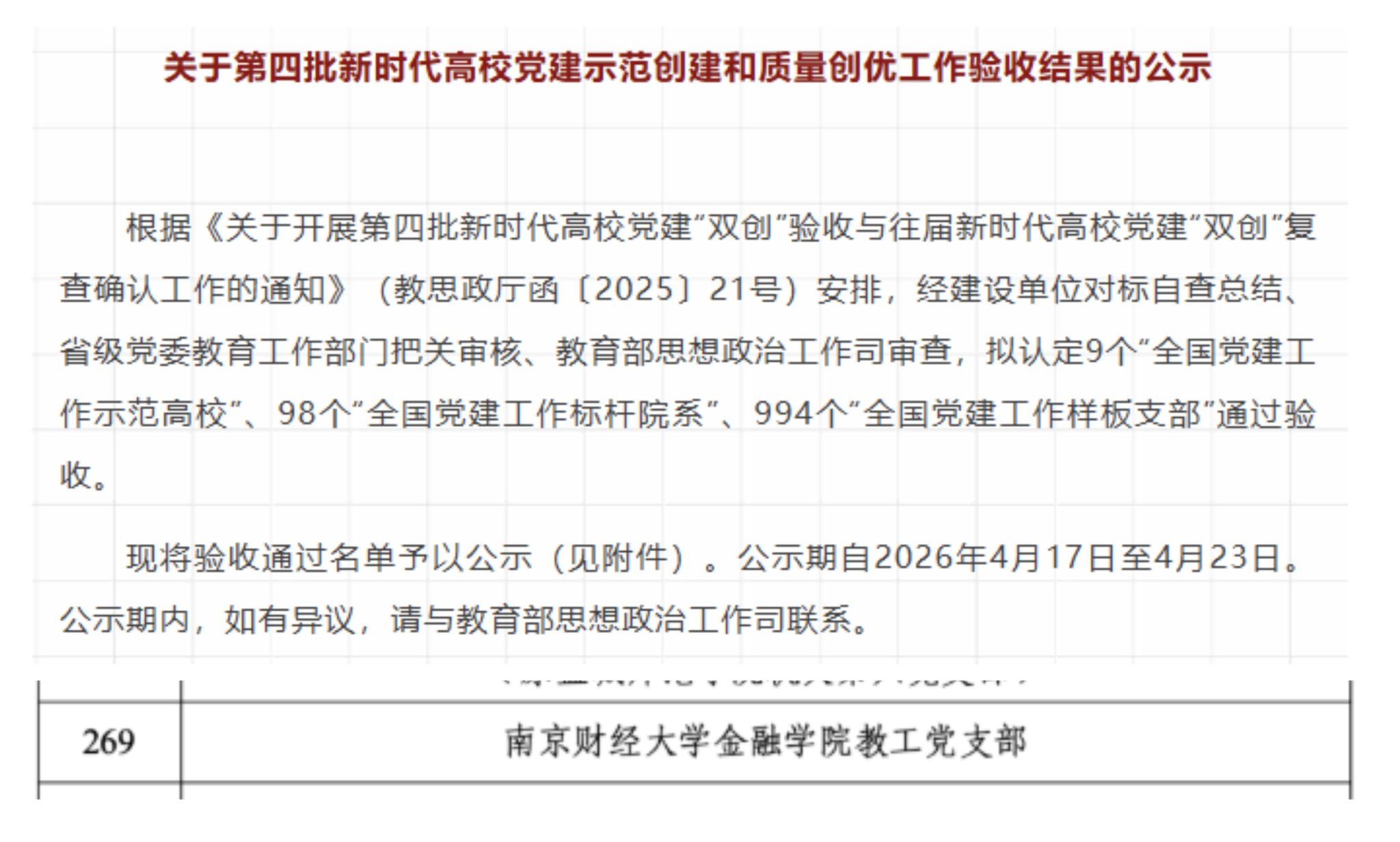 近日,教育部办公厅发布《关于第四批新时代高校党建示范创建和质量创优工作验收结果的公示》,华都娱乐场 教工党支部成功通过验收,正式获评全国党建工作样板支部,标志着华都娱乐场 基层党建工作再获国家级标志性成果,高质量党建引领高质量发展取得新突破。
