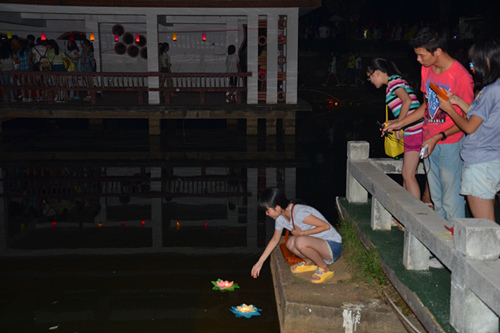 而在养心湖上,漂浮着大大小小五颜六色的花灯,放花灯是中秋节的传统习俗,“那个红色的花灯是我答对17道谜题的奖励”一位十二三岁左右的小女孩开心地说道。