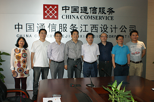 由党委书记汤兆平、副院长周日贵带领相关人员与江西省邮电规划设计院有限公司总经理鄢伟、副总经理向震东、技术研究院院长陈楫、移动通信设计所项目经理周翔等人对研究生培养基地的相关事项展开讨论。