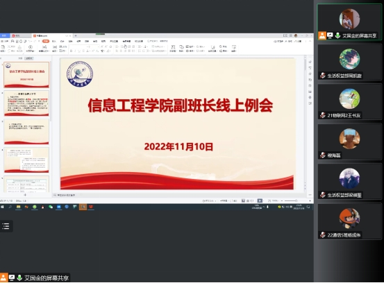 召开副班长线上例会,会议由院学工办副主任艾国金主持,各班副班长和学生会生活权益部全体成员参会。
