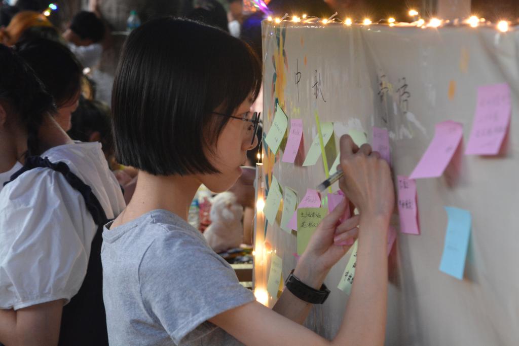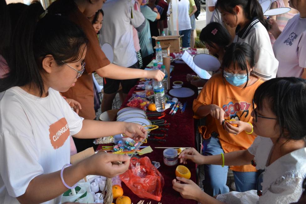 天色渐晚,圆月初升,此次活动正式开始。同学们在活动现场制作小橘灯以及团扇等精美的物品,既能够互相分享喜悦和乐趣,又能够体验到其中的文化之美。猜灯谜活动更是引来不少同学参与,谜面有猜字的,猜成语的,还有猜人名和地名的,充满趣味性与知识性。一旁的中秋留言板处,同学们亲笔写下对自己的寄语,对生活的期许,对华都娱乐场
