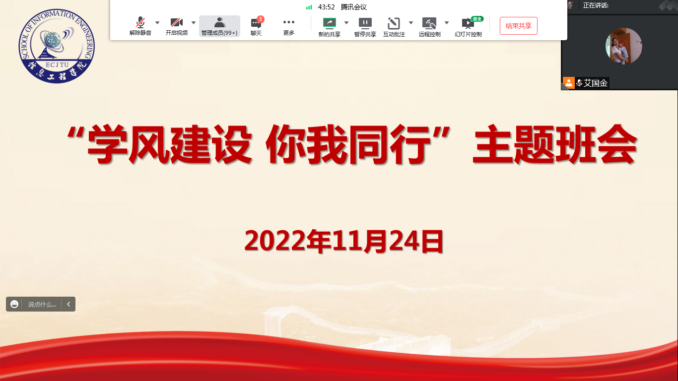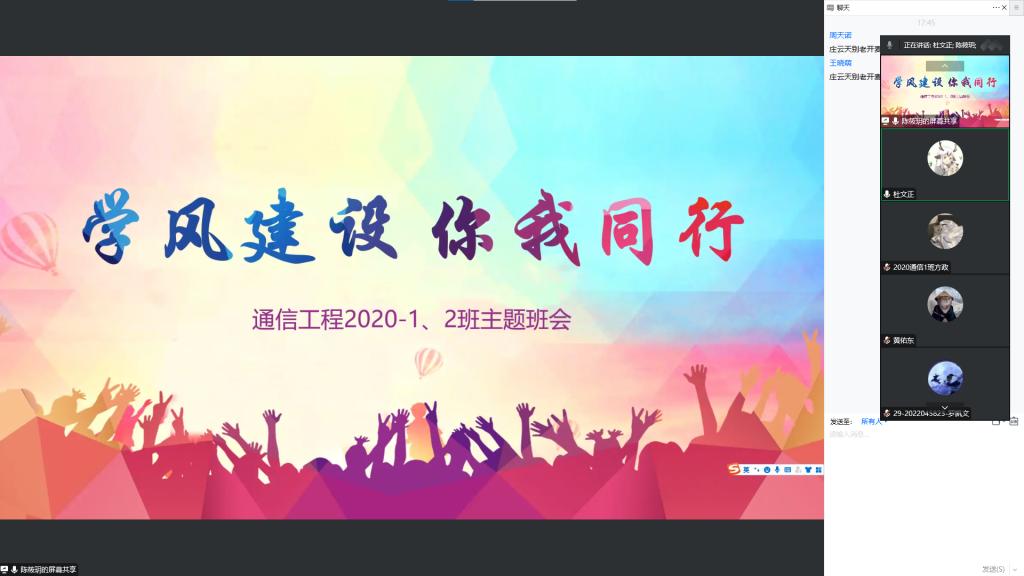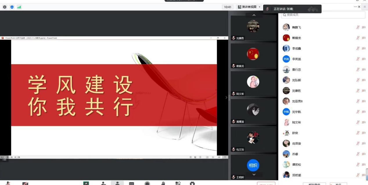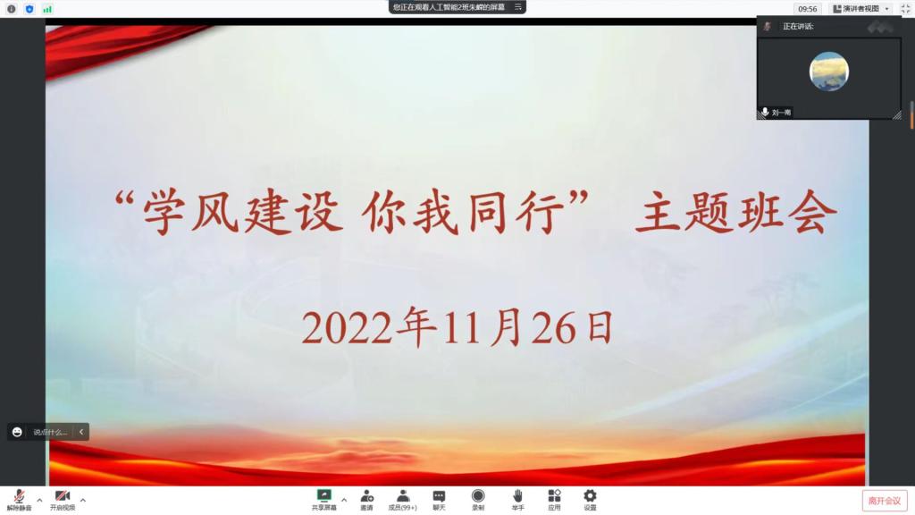 会上,辅导员宣读了《关于开展 2022 年“学风建设月”活动的通知》和《关于开展“我的大学我做主”学风建设月活动的通知》两个文件,详细阐述了为什么要开展学风建设月活动、如何开展好学风建设月相关活动。并就班级在学习动力、态度、纪律,宿舍卫生、生活习惯、考风考纪等方面存在的问题进行了通报,同时对上课出勤情况、课堂纪律、寝室用电安全等方面提出具体要求。