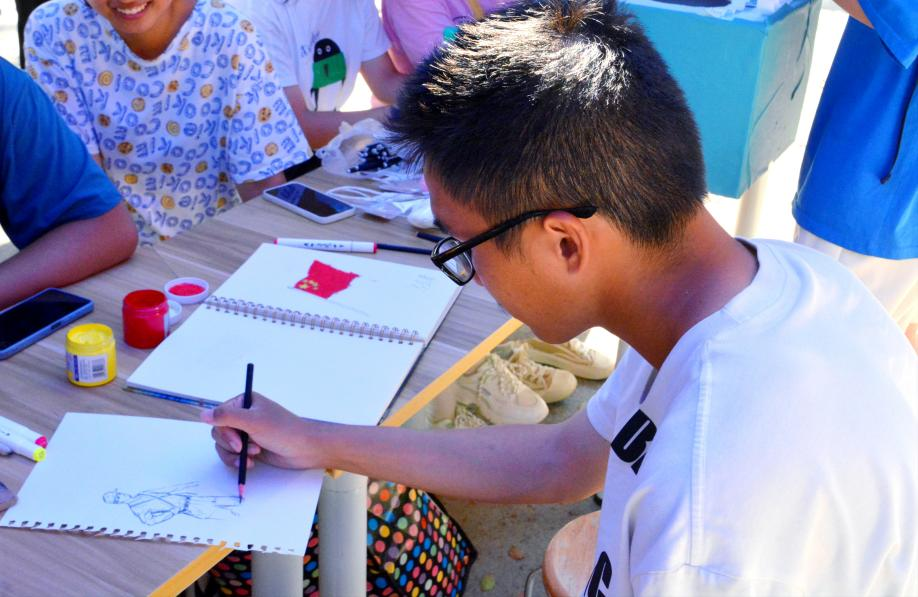 于南区一食堂门口举办趣味党史答题、共和国生日寄语和国庆主题绘画等主题活动,引来众多同学参与。活动过程中,同学们一同回顾了新中国的光辉历史,并通过绘画、寄语等多种方式,向祖国表达了最衷心的祝愿。活动现场处处弥漫着华夏儿女的殷殷爱国之情。