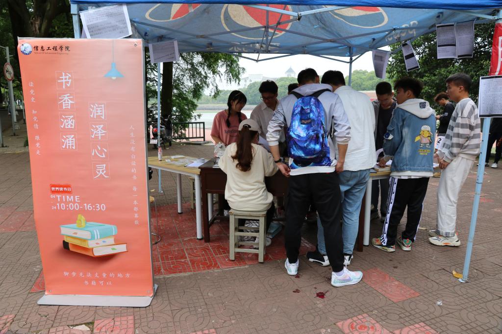 自4月19日起,组织开展“书香涵涌,润泽心灵”读书日活动,并于4月24日在南区一食堂门口举办线下活动。