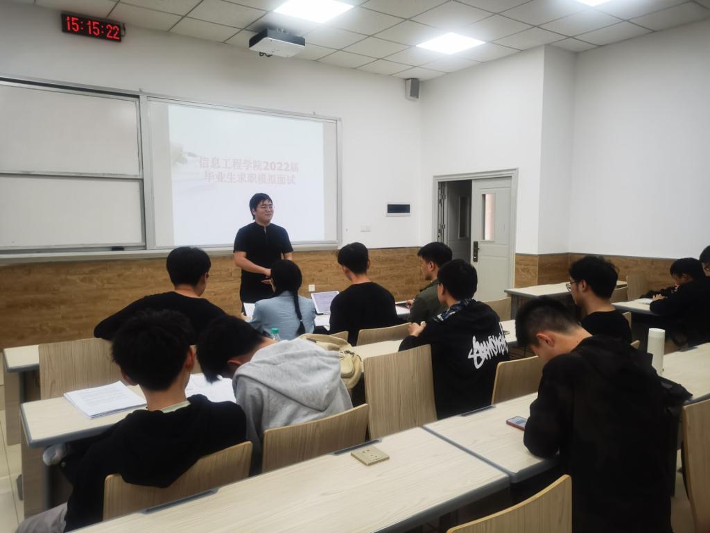 为了使同学们将理论知识与实践相结合,4月21日,18级信息工程专业的学生在何仲坚老师的指导下,举行了大学生就业模拟面试活动。