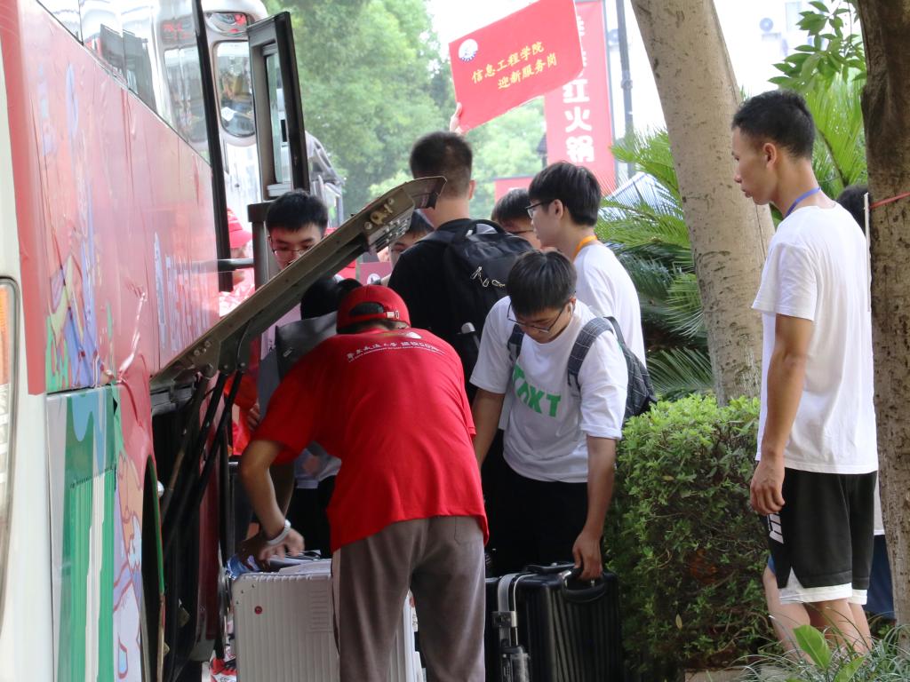 组织了迎新志愿者,在南区校门口以及新生大巴各站点接站,引导新生登记,帮助新生拿行李。