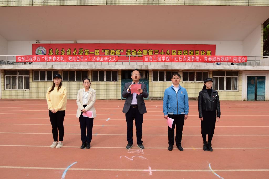 于南区田径场举办“红色点亮梦想,青春绽放赛场”主题院运会。