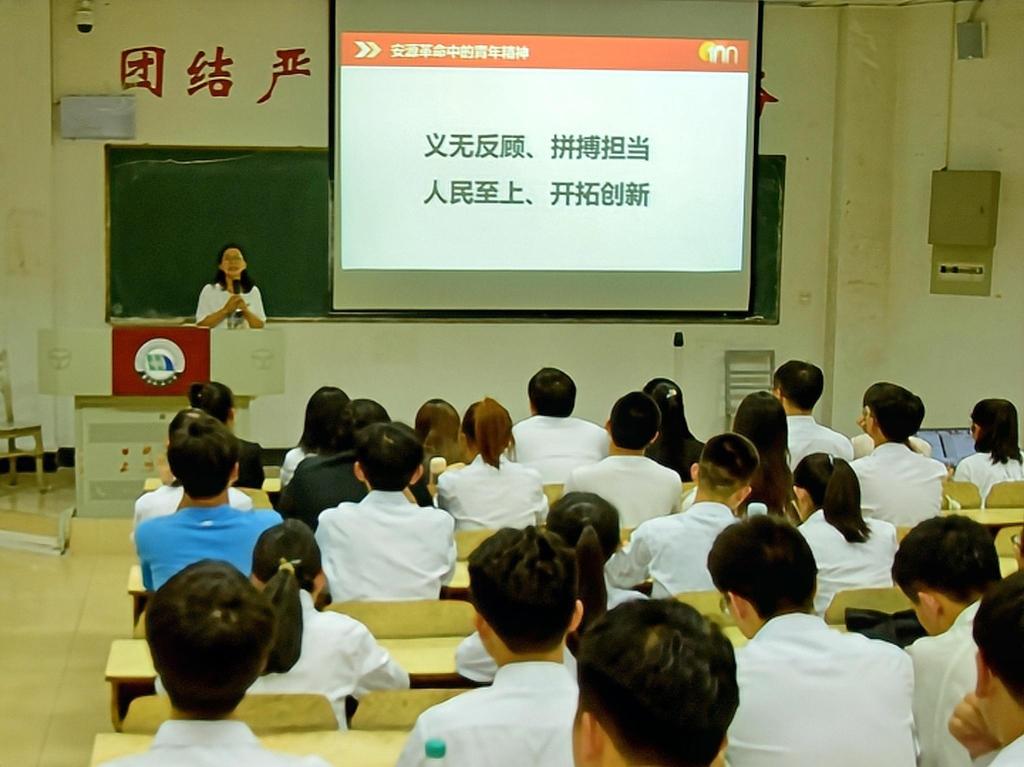杨青从“立志要高,起点要低”出发,勉励同学们不要抱有躺平的心态,要全力拼搏。杨青就中国工人运动进行了详细介绍,并带学生们了解了李立三、赵醒农等英雄的事迹。他们“生为中国生,死为中国死”的信念令人动容、令人敬佩。“江西是一片红色土地,是中国革命的摇篮、是人民军队的摇篮、是共和国的摇篮、是中国工人运动的摇篮。”杨青真切地说道。