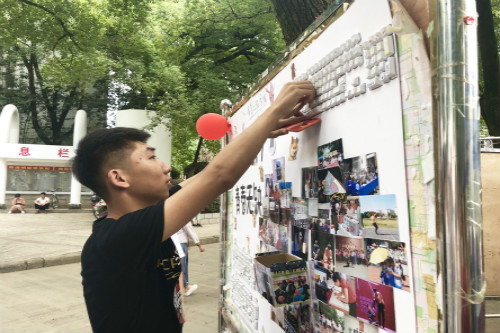 ”字样。工作人员介绍,来到这里的每一位新生,可以选取一枚喜欢的键帽留作纪念。此外,幸运的新生在揭开键帽的瞬间也会发现彩蛋——来自学长学姐的“定制祝福”。