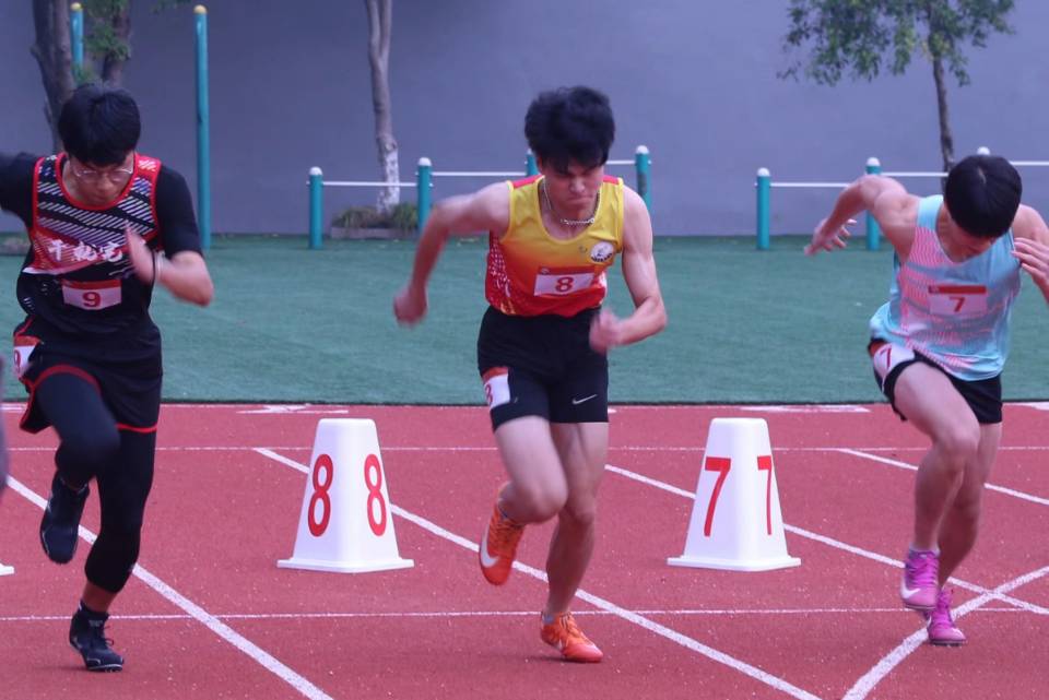 刘一帆在起跑处活动热身后,以蹲踞式预备。发令枪一响,比赛正式开始。他快如离弦之箭,疾似撒疆野马,冲向终点。加速!加速!再加速!伴随着看台观众的加油声,刘一帆以第三名的好成绩冲过终点摘下铜牌。