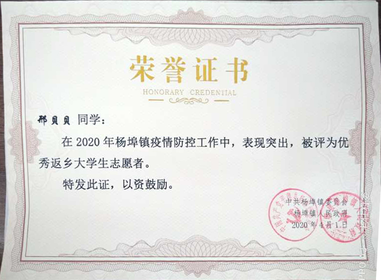 学生党员积极联系所在地街道办事处,第一时间加入当地的抗“疫”志愿服务活动,邢贝贝同学就是其中一员。