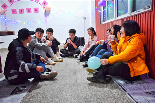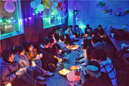 同学们在手捧蜡烛灯,席地而坐,伴着茶香,各自聊起了自己的各色室友,分享与室友的各种新奇经历与和室友相处时的心得体会。