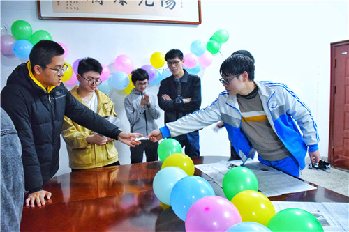 活动分为“猜拳大比拼”、“谁是卧底”、“茶语馨香”三个环节。猜拳环节,同学们被分为三个小组,每组八人,两人搭档,同时站在一张报纸上,后两两猜拳,输的一方所立足的报纸面积减半,在报纸上站立时间最长的一方获胜。被淘汰者在纸箱内抽取一张纸条,接受公主抱深蹲,扮演中毒者等惩罚,引得现场欢笑连连,妙趣横生,气氛逐渐活跃。