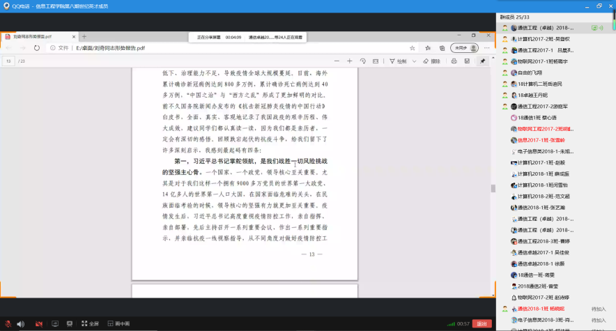 第八期世纪英才召开“学习省委书记刘奇同志形势政策报告”线上主题班会,世纪英才班班主任艾国金及全体学员参与。本次班会由学员徐骥凯主持。