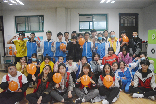 学生做互动游戏。“运输糖果”环节,启音学生们脑洞大开,将盘子折成不同的形状,协力运送糖果;“背夹球”环节,同学们二人协作、合力运球;“丢圈圈”环节,信息志愿者与启音学生一同较量。压轴项目“绘画彩蛋”环节,志愿者在气球上写下祝福,送给启音华都娱乐场