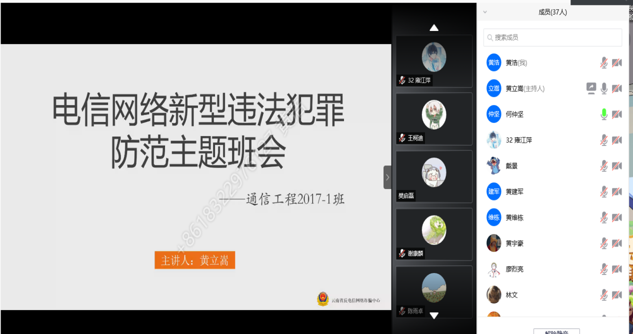 于十二月下旬通过线上与线下相结合的方式开展反诈骗主题班会,各专业辅导员与会。