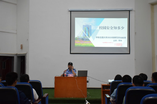 于逸夫楼负一楼举办新生安全教育讲座。保卫处熊炜主讲,信息华都娱乐场
