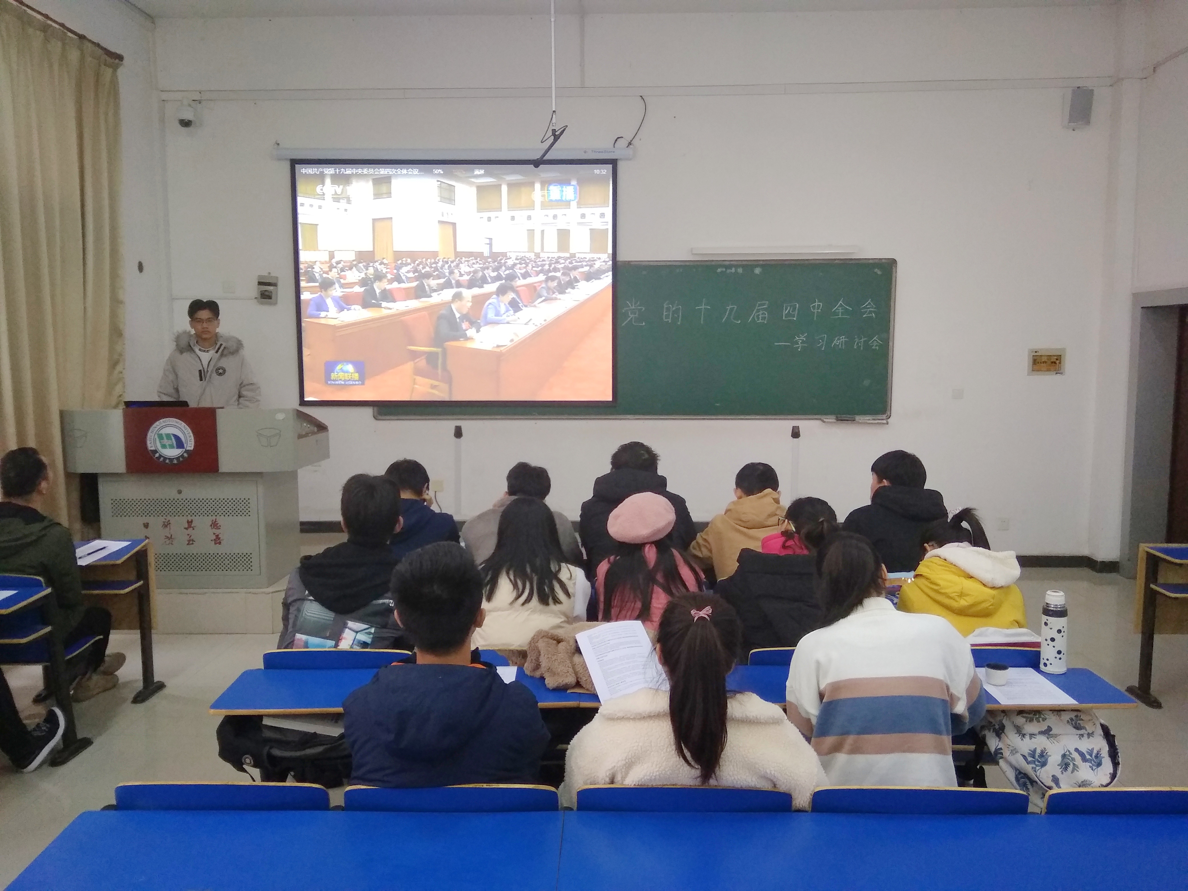 活动伊始,主讲人吕晨亮从全会审议通过的重要文件、作出的重要判断和给出的重要结论这三个方面出发,为同学们带来了一堂深刻的理论学习课程。随后,全体学生观看并学习“中国共产党第十九届中央委员会第四次全体会议公报”视频,领会习近平总书记各项重要讲话精神。