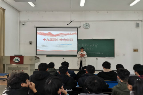 学习会伊始,一班团支书曹晓萱着重强调了“中国特色社会主义制度”具有的13个显著优势,并对13个“坚持和完善”做出解读。三班班长万星辰作为代表,宣读了十九届四中全会作出的重要判断及全会给出的重要结论,强调要树牢“四个意识”增强“四个自信”坚决做到“两个维护”,坚定政治立场,做新时代合格建设者和接班人。四班团支书黄冰对本次团课的主要内容——十九届四中全会《决定》的主要内容进行重点讲述,围绕其十五个小点分别进行详备的阐述,使同学们很快便对党的十九届四中全会所作的《决定》有了一个基本的认知。之后又向同学们传达了十九届四中全会精神要领;使同学们从两个方面深刻感受党的十九届四中全会的内涵。
