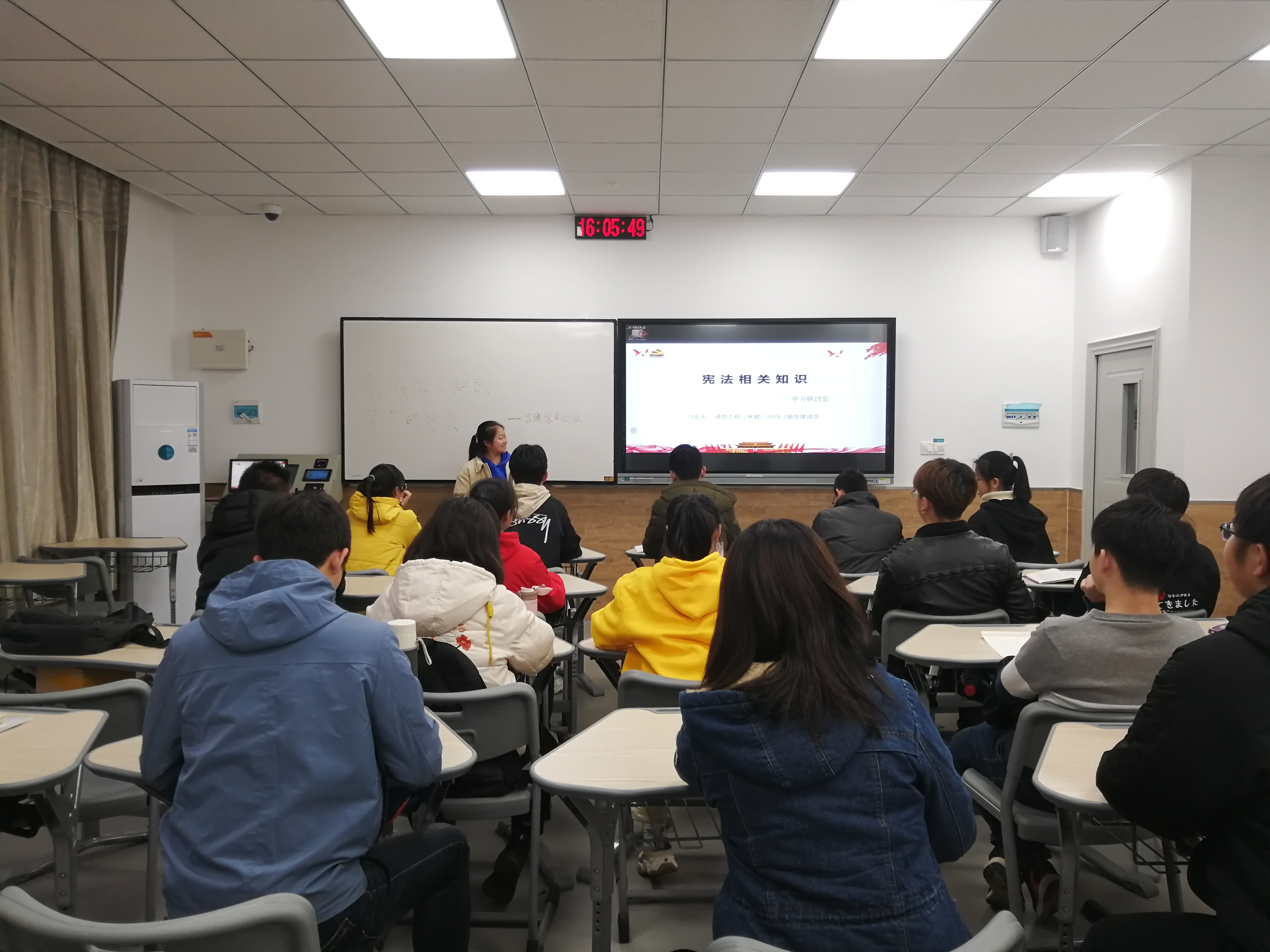 2018级通信工程三班、卓越班分别于逸夫楼209室和25栋318室举办宪法知识主题研讨班会。18级通信工程卓越班团支书王佳欣担任卓越班主讲人,通信三班团支书曹婷担任三班主讲人。
