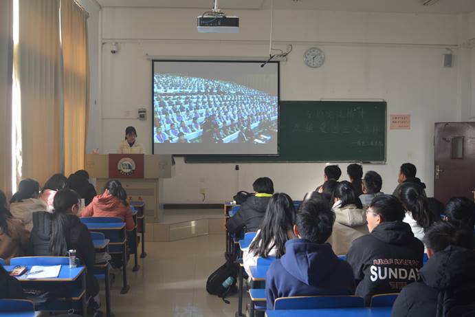 于逸夫楼209室组织19级计算机类学生观看“学宪法,讲宪法”全国总决赛现场直播。
