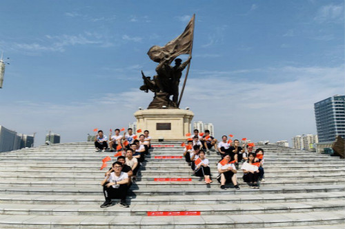 9月26日,通信工程(卓越)2017-1班全体成员从校门口出发,沿着赣江徒步前往南昌舰主题园,通过徒步前行,学生用脚步丈量先烈走过的红土地。途中每位同学脸贴五星红旗贴纸、手拿鲜艳的五星红旗。许多游客驻足拍照,与学生交流。同学们先后参观了南昌舰主题公园,建军雕塑广场,表现出对为祖国在70年来取得的巨大成就而自豪。