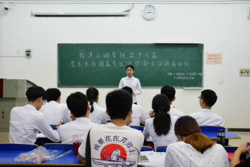 本次大会分为两批面试人员。同学们在208室签到候场,后按签到顺序依次到209室进行面试。面试分为两个环节。同学们进行内容为自我介绍和工作设想的五分钟发言。他们陆续上台,自信从容,就各自的基本情况、对岗位的认识以及工作设想等娓娓道来。各主席就竞选者的表现通过提问的方式对竞选者进一步加深了解并提出建议。 “你觉得你与三位部长相比,有哪些优缺点?”“今年建国七十周年,你对国庆前的活动有什么设想?”……同学们经过仔细思考后,认真回答。