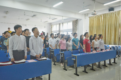 第五届阳光志愿者队新晋队员进行入队宣誓。