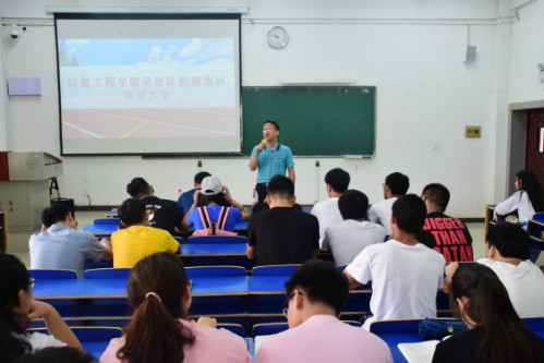 于逸夫楼112室召开2019届田径队假期集训动员大会。到场的嘉宾有信息华都娱乐场